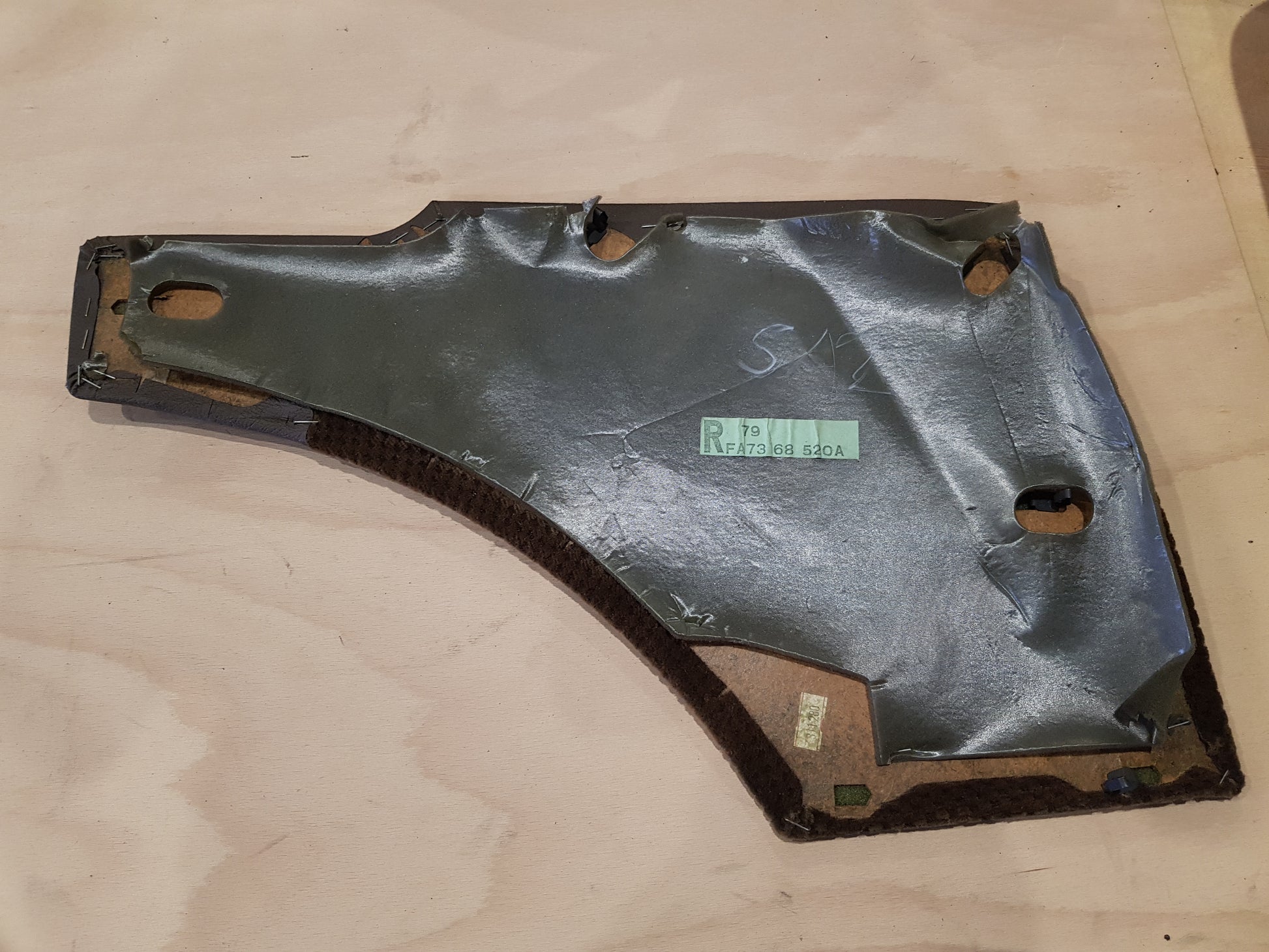 This is an interior trim panel in the right rear in front of the rear wheel arch. Used condition, slightly damaged (see pictures).